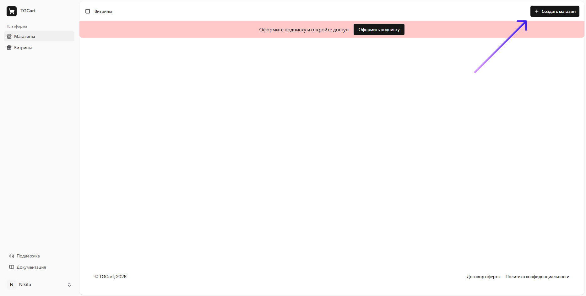 04. Администратор магазина — настройка для получения системных уведомлений от сервиса TGCart (например, обновления сервиса или напоминания об оплате). Укажите никнейм администратора в Telegram в формате @username.